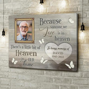Personalized Memorial Canvas - Memorial Gift For Family Member - Upload Photo - Because Someone We Love Is In Heaven There's A Little Bit Of Heaven In Our Home