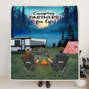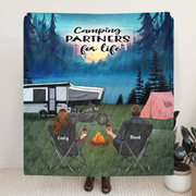 Personalized Camping Quilt/Fleece Blanket - Couple/Parents With Up to 4 Kids And 3 Pets - Camping Partners For Life