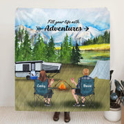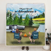 Personalized Camping Quilt/Fleece Blanket - Couple/Parents With Up to 4 Kids And 4 Pets - Gift Idea For Camping Lover