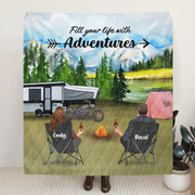 Personalized Camping Quilt/Fleece Throw Blanket - Couple/Parents With Up to 5 Kids And 4 Pets - Gift Idea For Camping Lover - Life Is Better Around The Campfire
