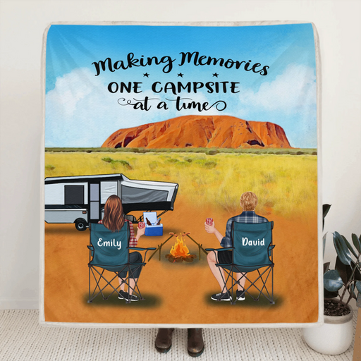 Afficher tous les détailsPersonalized Camping Quilt/Fleece Blanket - Couple/Parents With Up to 4 Kids And 3 Pets - Camping Partners For Life