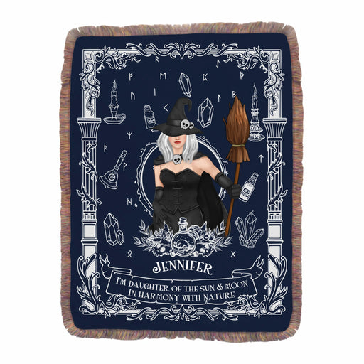 Personalized Witch Ultra-Soft Fringe Blanket - Mystical Gift for Witch Lovers, Sister, Mom, Friend - I'm The Daughter Of The Sun & Moon