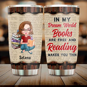Custom Personalized Reading Girl Tumbler - Gift Idea For Book Lover/ Friends - In My Dream World, Books Are Free and Reading Makes You Thin