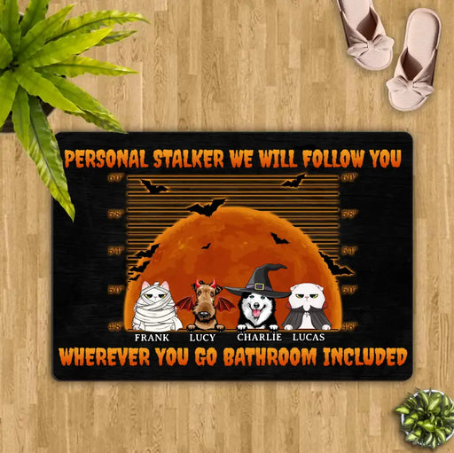 Personalized Halloween Pets Doormat - Halloween Gift For Dog/Cat Lover - Up to 4 Pets - Personal Stalker We Will Follow You Wherever You Go