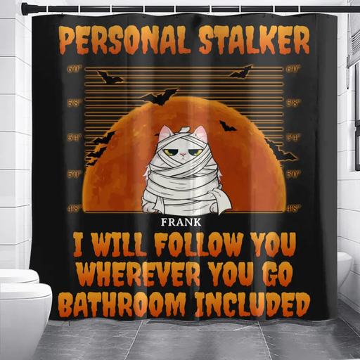 Personalized Halloween Cat Boo Shower Curtain - Halloween Gift For Cat Lover - Up to 4 Cats - Personal Stalker I Will Follow You Wherever You Go