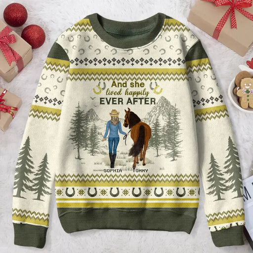 Afficher tous les détailsPersonalized Horse Girl Sweater - Christmas Gift Idea For Horse Lover - Up to 6 Horses - And She Lived Happily Ever After