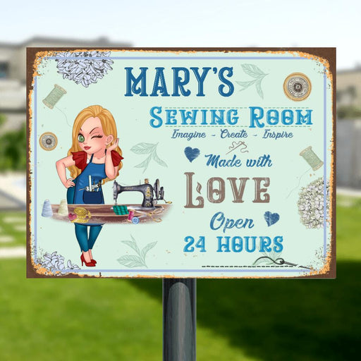 Afficher tous les détailsCustom Personalized Sewing Chibi Girl Metal Sign - Gift For Sewing Lovers/Mother's Day - Sewing Room Imagine, Create, Inspire Made With Love Open 24 Hours