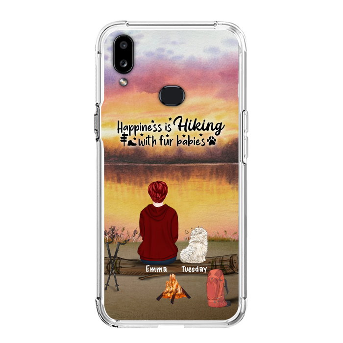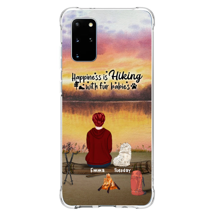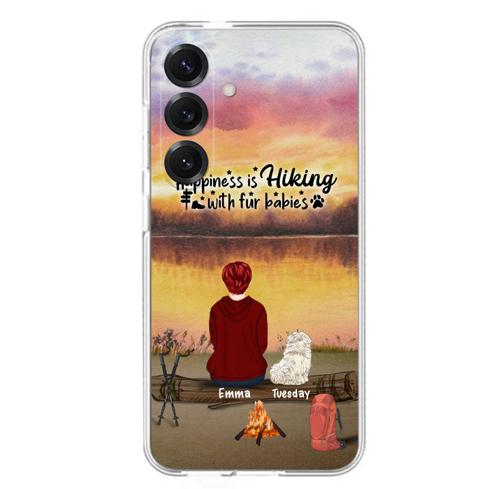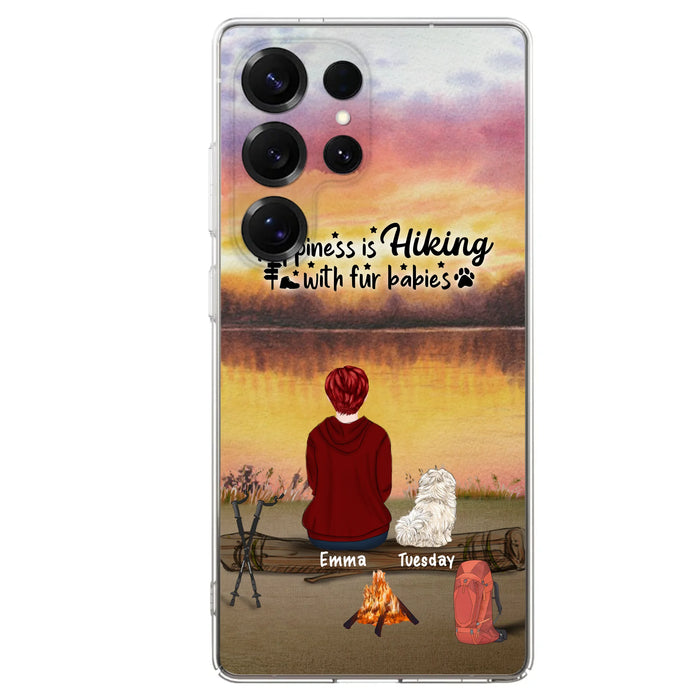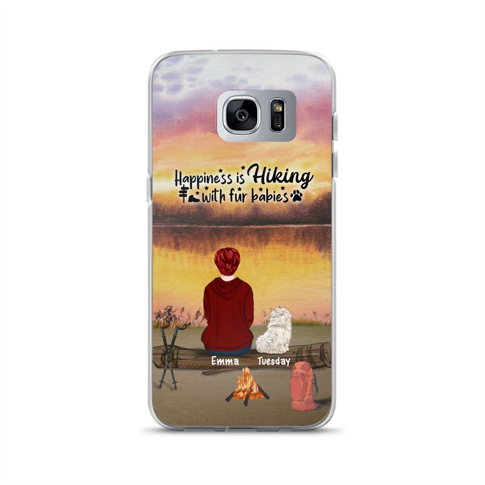 Custom Personalized Hiking Phone Case - Man/ Woman/ Couple With Upto 4 Pets - Gift For Cat/ Dog Lover - Happiness Is Hiking With Fur Babies - Case For iPhone And Samsung