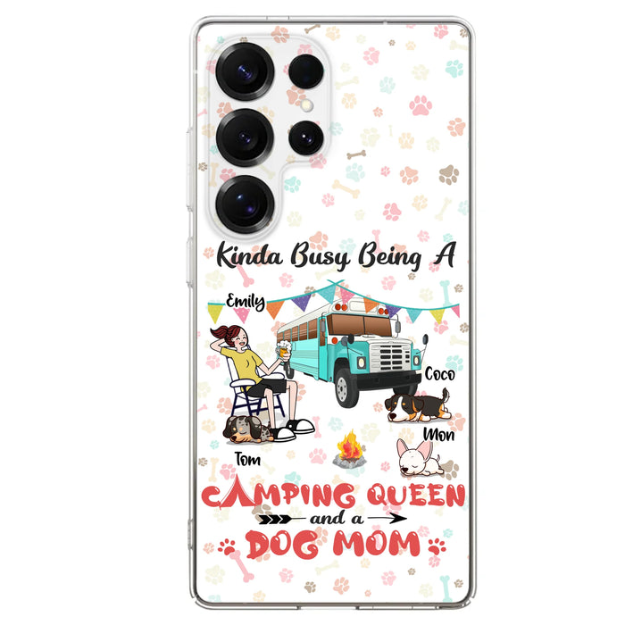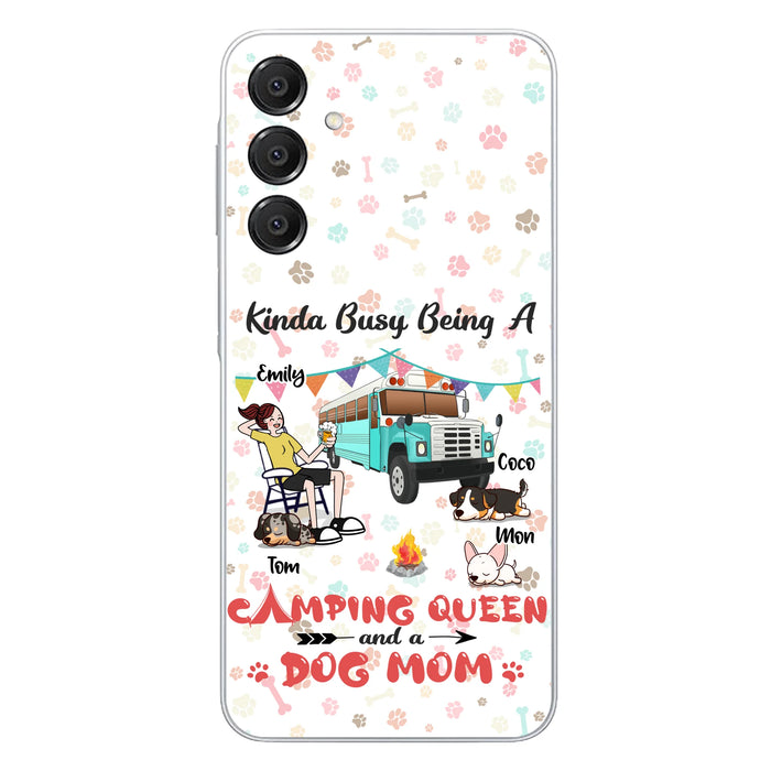 Custom Personalized Camping Queen Phone Case - Upto 3 Dogs - Gift Idea For Dog Lovers - Kinda Busy Being A Camping Queen And A Dog Mom - Case For iPhone/Samsung