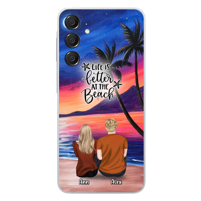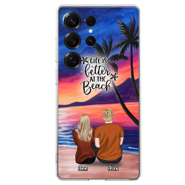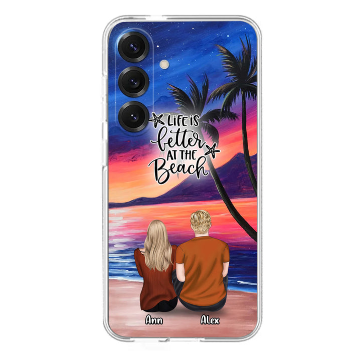 Personalized Couple and Pet Beach Dawn Phone Case for iPhone and Samsung - Couple with up to 4 dogs/cats - Life is better at the beach
