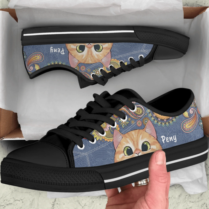 Personalized Cat Low Top Sneakers - Gift For Couple, Cat Lovers