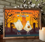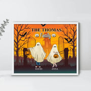 Personalized Halloween Ghost Family Unframed Horizontal Poster - Halloween Gift For Couple/Family - Up to 5 People With 4 Pets - The Thomas Family