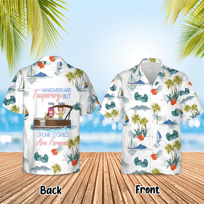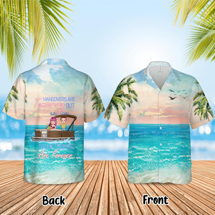 Custom Personalized Pontoon Friends Hawaiian Shirt - Up to 4 Friends - Hangovers Are Temporary But Drunk Stories Are Forever