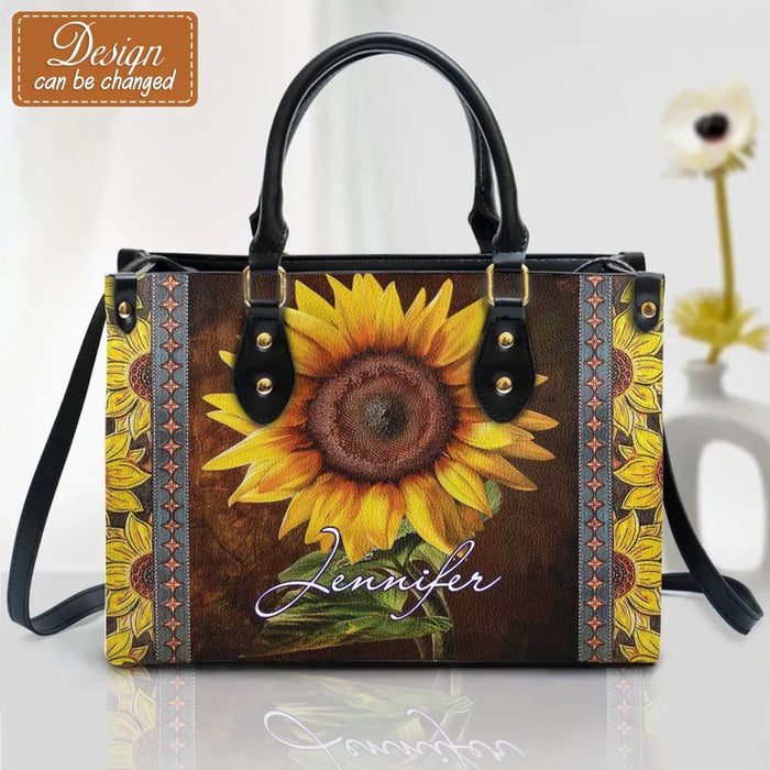 Personalized Sunflower PU Leather Handbag With Long Straps - Gift Idea For Woman/Grandma/Mom/Daughter/Friend/Wife